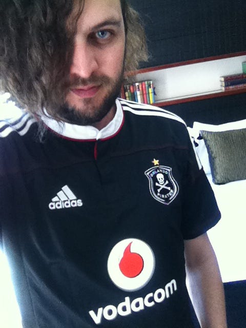 At Joburg airport, I quickly bought an Orlando Pirates jersey. I didn’t really know the team. I just liked the name. Orlando Pirates sounded badass.